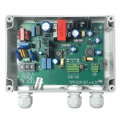 Блок питания ТРЕЗОР-БП 24-0,5/12-1,0 (БП) предназначен для преобразования переменного напряжения 220 В переменного тока в стабилизированное напряжение 12 В и 24 В постоянного тока.