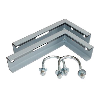 Для монтажа опоры на ограждения используются L-образные кронштейны, которые крепятся к опоре с помощью U-образных хомутов. Кронштейны и хомуты входят в комплект поставки Опоры консольной.