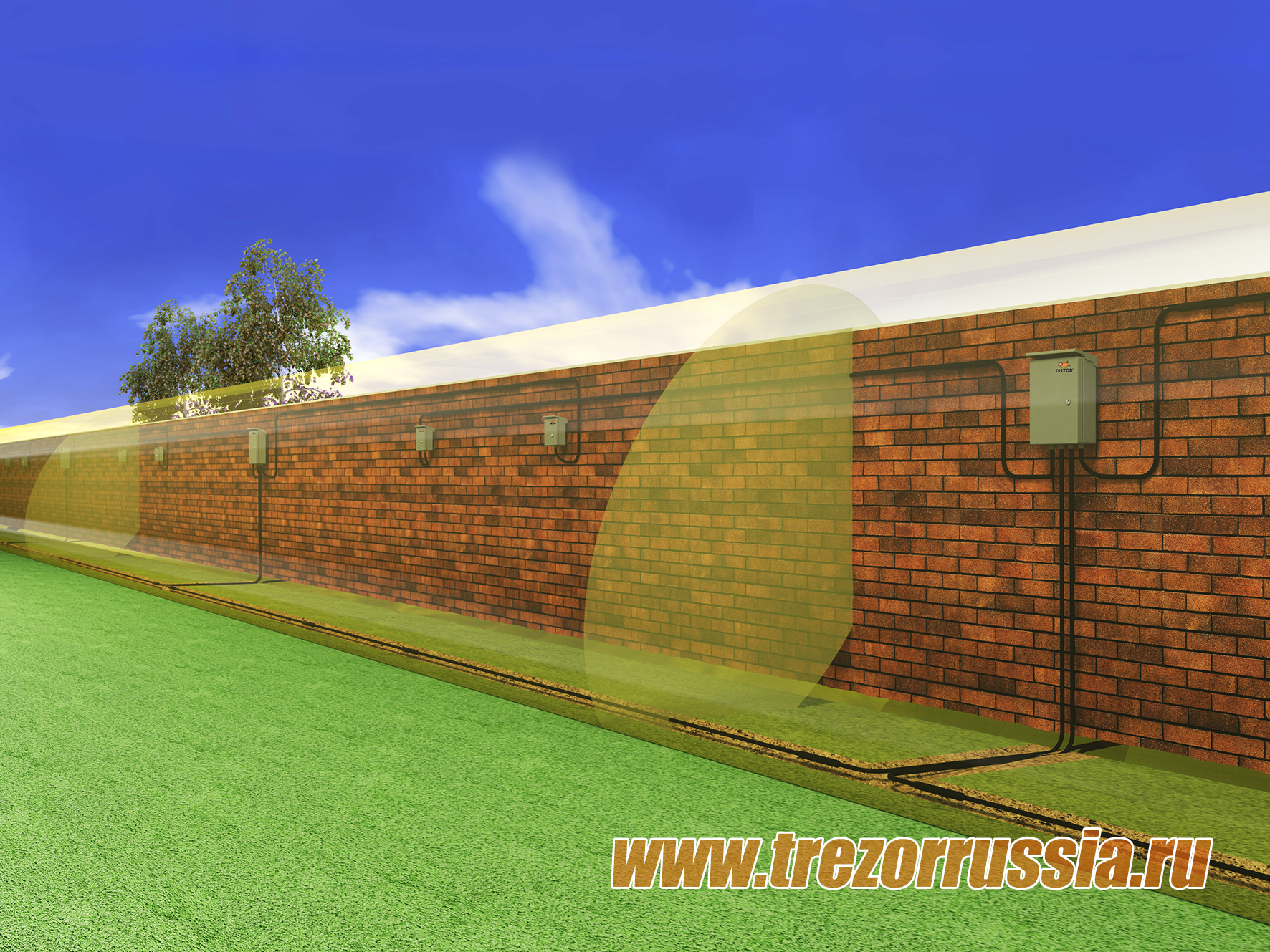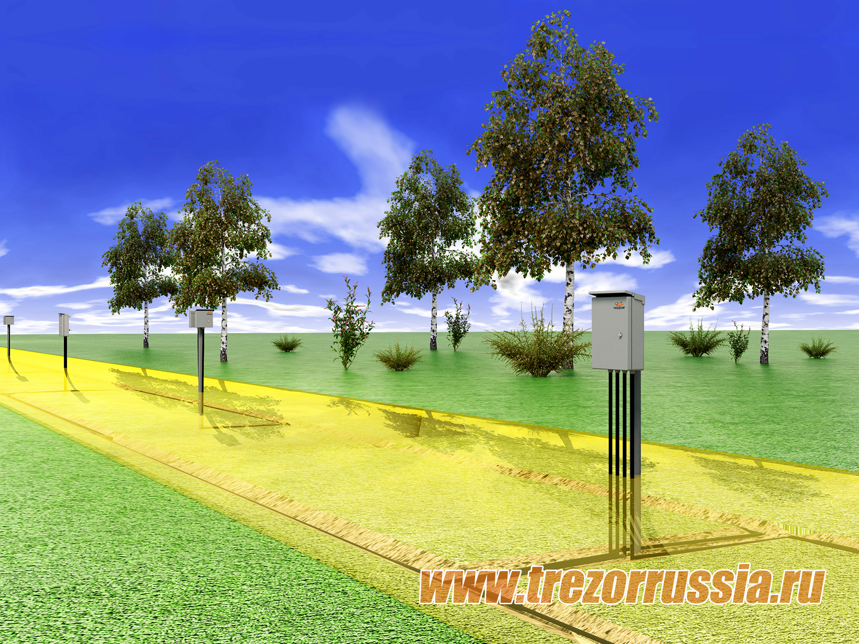 Наличие растительности (трава, кусты и деревья) или снега в зоне обнаружения и в непосредственной близости от нее НЕ ВЛИЯЕТ на работоспособность «ТРЕЗОР-Р». |