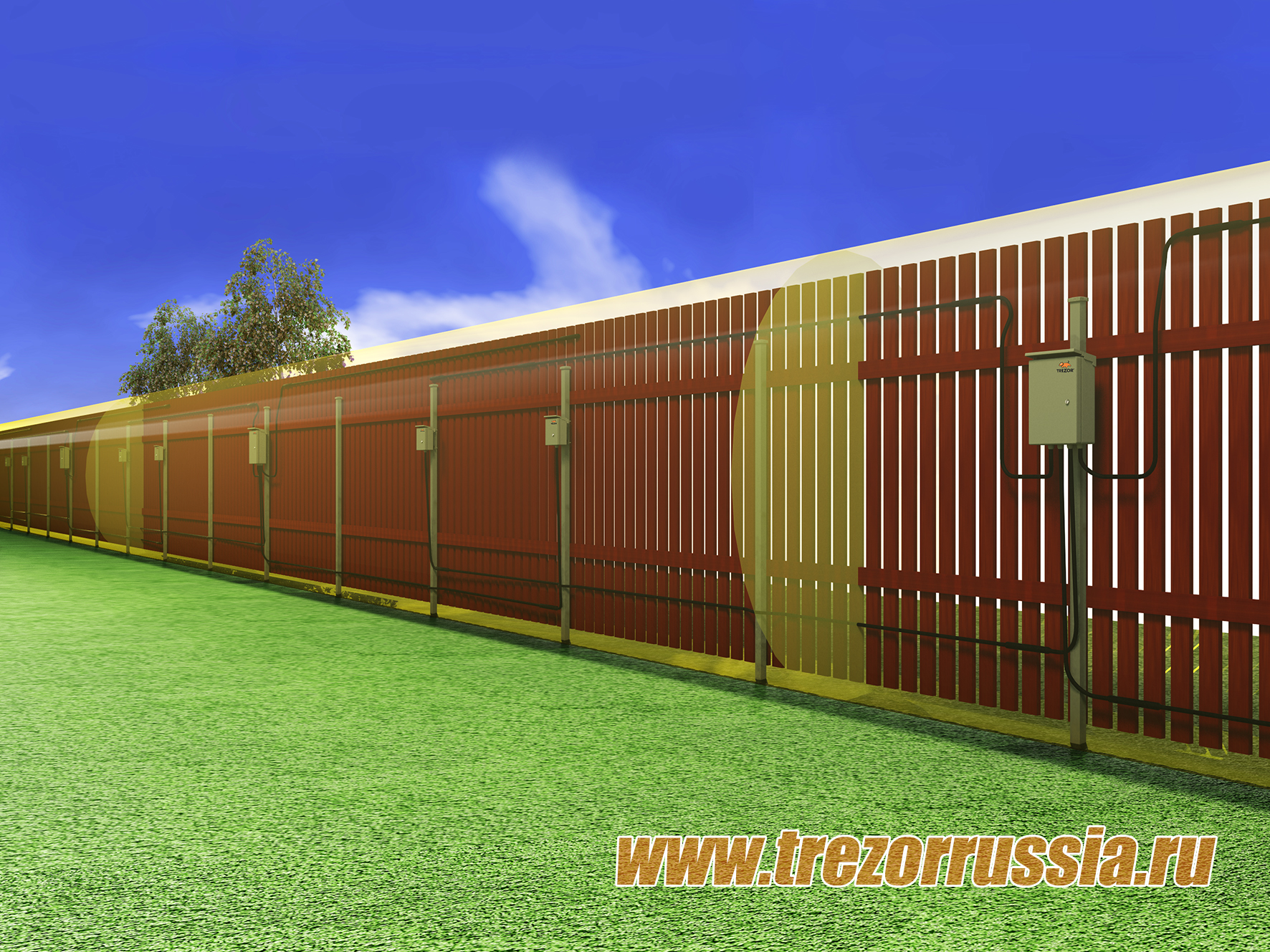 Радиоволновое средство обнаружения (Линия Вытекающей Волны) «ТРЕЗОР-Р» предназначено для сигнализационного контроля открытых участков местности, а также периметра объекта. Обнаруживает нарушителя, преодолевающего заграждение путем его перелаза, разрушения или подкопа. Позволяет создавать невидимые рубежи охраны при отсутствии заграждения.