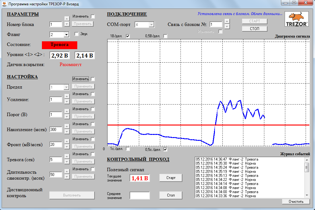 - возможность настройки при помощи подключаемого ПУ или ПО «ТРЕЗОР-Р Визард»;