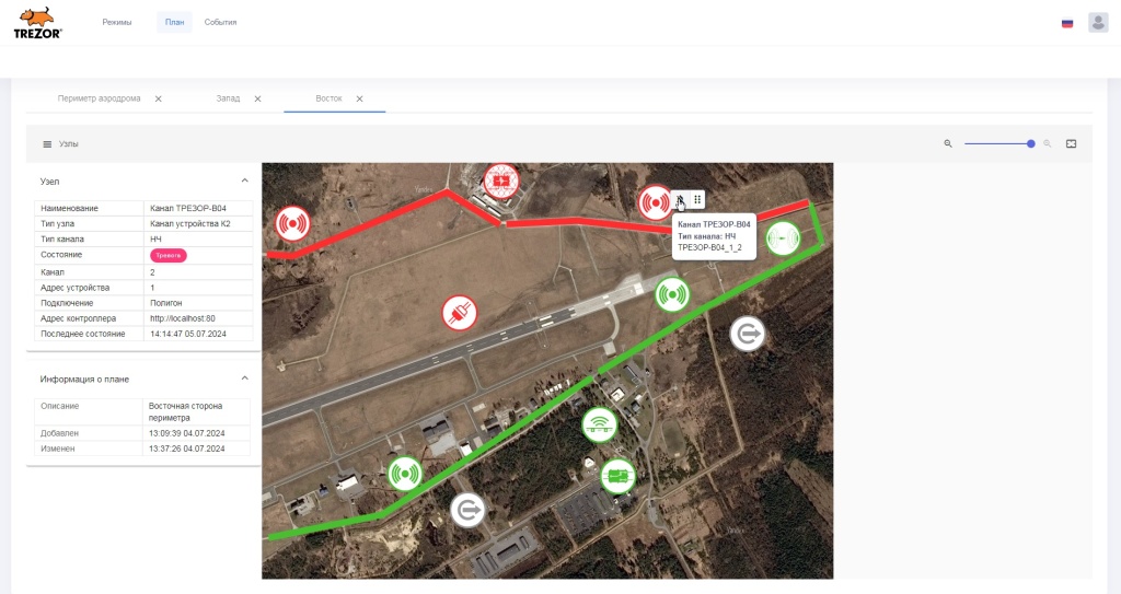 Система мониторинга «ТРЕЗОР-СМ» является инструментом управления и мониторинга в распределенной системе охраны периметра, построенной на базе контроллеров «Трезор-К2», а также различных охранных устройств – извещателей и блоков линейных, обеспечивающих работу охранной сигнализации периметра и исполнительных устройств.