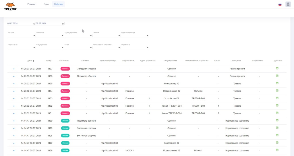 Программное обеспечение контроллера ТРЕЗОР-К2 обновлено с добавлением функций системы сбора и обработки информации – Система мониторинга.